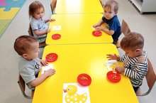 Продолжаем знакомить детей ясельной группы с пластилином и его свойствами. Формируем интерес к работе с пластилином, развиваем мелкую моторику.