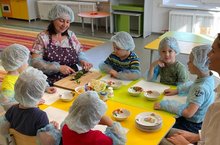 he pupils of the 12th group consolidated the theme "Vegetables" and prepared a vegetable salad with their own hands. The salad is simply delicious, tasty, hearty and simple. Everyone will cheer up and decorate the table with any)).