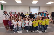 Сегодня в нашем детском саду прошло образовательное мероприятие «Знатоки правил дорожного движения!». В увлекательной викторине приняли участие дети 8 и 11 групп. Наши замечательные знатоки не только показали знания о безопасности дорожного движения, но и проявили свои творческие таланты. Мероприятие посетили инспектора ГИБДД: начальник отделения по профилактике БДД Насыров Ильназ Якубович, лейтенант полиции отделения по профилактике БДД Штенников Дмитрий Александрович и ведущий специалист по пропаганде БДД Персидская Надежда Сергеевна, рассказали участникам и зрителям интереснейшую информацию о правилах безопасной перевозки детей и светоотражающих элементах. Каждый участник и зритель получил светоотражающий значок и массу положительных эмоций. Гости тоже ушли не с пустыми руками, воспитанники старших групп вместе с воспитателями подготовили в подарок прекрасную поделку в виде снеговика и новогодней елочки, украшенную дорожными знаками.
