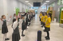 «Адымнар-Алабуга» күптелле белем бирү комплексында уку атнасы Россия Федерациясе һәм Татарстан Республикасы гимнын башкару тантанасыннан башланды.