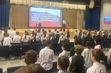 Уку атнасы традиция буенча «Адымнар-Алабуга» полилингваль белем бирү комплексында символик мизгелдән - Россия Федерациясе һәм Татарстан Республикасы гимнын чыгару һәм чыгару башланды.