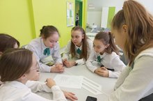 | У нас учат: | 79 учителей, языки обучения: русский, татарский, английский |