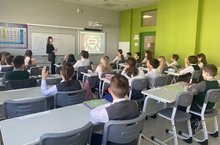 The students repeated the rules of the road, the rules of behaviour on the street. It was a very useful leeson.29 апреля во 2Ж классе сотрудник полиции провела очень интересное и увлекательное занятие по изготовлению светоотражающих элементов.