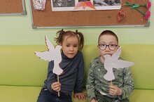 В предверии первомайских праздников воспитатель дневного отделения предложила детям изготовить своими руками белых голубей - символ мира, добра и благополучия.