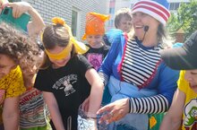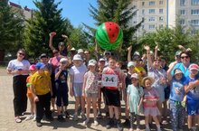 Завершился праздник всеобщим волейболом огромным "арбузиком". В рамках финансовой грамотности воспитанники обменяли заработанные за участие в конкурсах "астриксы" на призы в специально организованном магазинчике.