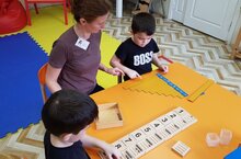 В Елабужском реабилитационном центре для детей и подростков с ограниченными возможностями здоровья "Астра " на занятиях под руководством Монтессори-педагога Сабитовой Гульнары дети изучают не только цвет, форму, величину, но и знакомятся с цифрами, обучаются прямому и обратному счёту, учатся соотносить число и количество.