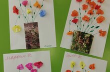Включив фантазию, правильно подобрав цвета, потратив немного терпения и времени,у детей получились яркие и красочные аппликации из бумажных салфеток, которые можно подарить своему близкому человеку. -