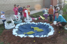 Нынче в нашем саду появился красивый пруд. Здесь плавают золотые рыбки, важно сидят лебеди, расцвели кувшинки. Просто волшебство!