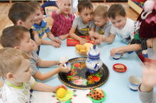 В младшей группе № 4 состоялась сюжетно-ролевая игра "В гостях у бабушки и дедушки" в ходе, которой дети обыграли церемонию прихода гостей, чаепития и угощения блинами. Они узнали, какие предметы быта можно использовать для создания домашнего уюта и атмосферы дружеской беседы, вспомнили вежливые слова и о том, как приятно дарить близким подарки. Игра также приурочена к празднованию Масленицы.