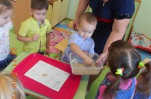 Игры с песком - одна из форм естественной деятельности ребенка. Свойства песка несут в себе некую загадочность и таинственность и способны завораживать человека.Игры с песком положительно влияют на развитие воображения и творческих способностей детей. На песочном полигоне можно дать волю своей буйной фантазии. Сколько всего можно вылепить из влажного песка: фигурные куличики, домики, гаражи, дворцы, города, скульптуры. Юные исследователи из группы «Ягодка» помогли зайчишке найти дорогу домой - выполнили коллективную работу - аппликацию из песка. В процессе работы закрепили знания о свойствах песка (сухой, тёплый, сыпучий, легкий, может быть мокрым, из него лепят куличики), а также закрепили правила поведения при игре с песком.