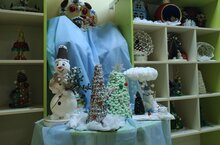 В детском саду «Садко» работает выставка зимних поделок. В детском саду №32 «Садко» проходит выставка работ на зимнюю тематику. Снеговики, ёлочки и другие творения, сделанные руками детей и их родителей, украшают холл учреждения.