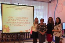 Наши педагоги Сафарова А.А., Кривилева Э.Р., Исмагилова И.Ш., Московская Н.Н., Калимуллина А.Г. приняли активное участие в зональном семинаре – практикуме « Квест – современная игровая технология обучения дошкольников в условиях ФГОС ДО» на базе МБ ДОУ Детский сад общеразвивающего вида № 22 г.Нижнекамска.