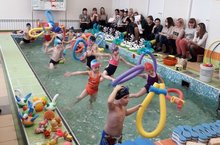 Сегодня наш инструктор по плаванью, Наталья Сергеевна, наглядно продемонстрировала чему и как научились наши бедующие выпускники. На открытое занятие были приглашены преподаватели физической культуры и инструктора по плаванию детских садов, а также коллектив детского сада.