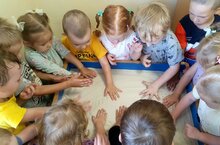 Дошкольные образовательные учреждения используют разные формы и методы в работе с ребятами для гармоничного развития личности. Особо актуальными являются нетрадиционные подходы в работе с детьми. Песочная терапия – один из методов экспрессивной терапии. В честь праздника " День семьи любви и верности" дети рисовали по рассказу педагога ромашки на песке, посылали свои тёплые приветы и отпечатки своих ладошек своим родным и близким. А также при рисовании большого сердца, дети проговаривали ласковые слова для своих мам и пап.Кече төркемдә балалар белән комда "Гаилә һәм тугрылык көне" темасына әңгәмә һәм рәсем ясау Мәктәпкәчә белем бирү учреждениеләре шәхеснең гармонияле үсеше өчен балалар белән эшләүдә төрле формалар һәм ысуллар куллана. Балалар белән эшләүдә традицион булмаган алымнар аеруча актуаль булып тора. Песочная терапия - экспрессив терапия методларының берсе. "Мәхәббәт һәм тугрылык гаиләсе көне" бәйрәме уңаеннан балалар педагог сөйләве буенча комда ромашка ясадылар, үзләренең җылы сәламнәрен һәм үз туганнарына һәм якыннарына үз уч эзләрен җибәрделәр. Шулай ук зур йөрәк ясаганда, балалар әти-әниләренә җылы сүзләр әйттеләр.