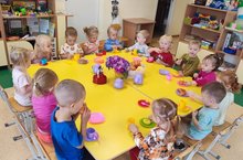 Балалар чәй савытлары, өстәл артында үз-үзләрен тоту кагыйдәләре турында белемнәрен ныгыттылар һәм сүзлек запасын баеттылар. -