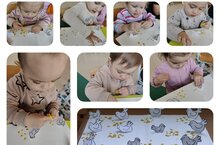 Пластилин - балалар өчен иң кулай әвәләү чараларының берсе. Сабыйның пластилинны әвәләве, аны кисәкләргә бүлуе балаларның кул чукларын үстерүдә мөһим роль уйный. Шуңа күрә, без инде яшьтән үк бу файдалы иҗади эш белән шөгыльләнергә кирәк, дип саныйбыз. Без исэ, бүген кошлар өчен азык әвәләдек. -