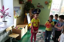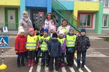 Тәрбиячеләр Московская Н..Н., А. Г. Кәлимуллина, А. А. Семенова, Дәүләт автоинспекциясе хезмәткәрләре белән берлектә юл хәрәкәте иминлеге буенча уен мәйданчыгында 11нче мәктәпкә әзерлек төркеме балалары белән юл йөрү кагыйдәләре буенча квест - уен үткәрделәр