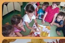 Көз турында сөйләшкәннән соң без зурлар төркеме белән яфраклардан күмәк аппликация ясадык.