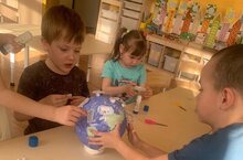 С целью воспитания у детей бережного отношения ко всему живому на Земле детям предложили сделать поделку - планета Земля из папье-маше! Понадобится: