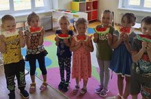 In summer we enjoy warm summer days and goodies. Now is a great time for berries and fruits to appear. Watermelons are a traditional treat in summer . Children of groups 6 and 4 made their watermelons . Watermelons turned out to be very cute and delicious for children.