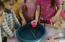 6 төркемдә "йөзә-тонет" дигән эксперимент узды: балаларга суда кайбер фәннәрнең суда йөзә алуын һәм башка нечкәлекләрен күрсәтү. Нәтиҗә: барлык предметлар да су ала тотарга өслегендә, чөнки алар төрле материаллардан (җиңел һәм авыр, агач һәм предметлар наполненный һава)