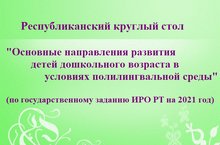 Республиканский круглый стол "Основные направления развития детей дошкольного возраста в условиях создания полилингвальной среды" (по государственному заданию ИРО РТ на 2021 год) /Republican round table "The main directions of development of preschool children in the conditions of creating a multilingual environment" (according to the state task of the IRO of the Republic of Tatarstan for 2021) /"Полилингваль мохит булдыру шартларында мәктәпкәчә яшьтәге балаларны үстерүнең төп юнәлешләре" республика түгәрәк өстәле (2021 елга ТР ИО дәүләт биреме буенча) 21.04.2021