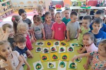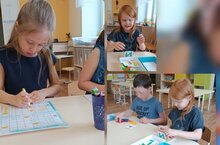 Children learned to lay out ready-made forms of bagels on a piece of paper, on a