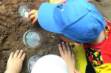 Педагоги детского сада № 26 «Семицветик» играют с детьми в увлекательную, но забытую многими игру - "Секретик". Чтобы создать секрет, детям предлагается выкопать в песке небольшую ямку, затем положить в неё красивую композицию из бросового материала.