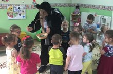 Өлкән сержант Айрат Альбертович өйдә куркынычсыз тәртип кагыйдәләре, янгын килеп чыгу сәбәпләре ни дәрәҗәдә мөһим булуын аңлатты, янгын чыккан очракта гамәлләр тәртибе турында сөйләштеләр. Моннан тыш, өлкән лейтенант Овечкин Роман Михайлович балаларның янгын куркынычсызлыгы кагыйдәләре буенча белемнәрен тикшерде. Балалар зур игътибар белән тыңладылар һәм үзләрен кызыксындырган сорауларын бирделәр, шулай ук бик теләп үзләренең белемнәре белән уртаклаштылар. Балалар үзләре өчен нәтиҗә ясадылар: шырпы кулга алырга ярамый, чөнки алар белән уен зур янгынга һәм хәтта кешеләр һәлакәтенә китерергә мөмкин! -