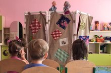Сегодня у малышей прошло первое знакомство с театрализованной деятельностью в виде кукольного представления, которое показали им воспитатели. Являясь зрителями, дети познакомились со сказкой «Курочка Ряба». Встреча с куклами помогла ребятам расслабиться, снять напряжение, создать радостную атмосферу. Так же показ кукольного театра оказал благоприятное воздействие на детей в период адаптации. Они не только узнали о новой сказке, но и получили массу приятных впечатлений.
