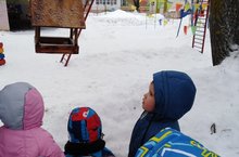 Во время прогулки дети младшей группы №2 покормили птиц и понаблюдали за птичьей столовой.