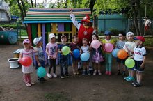 Международный день защиты детей дети группы №8 встретили на хорошо оборудованном, покрашенном и озеленённом цветами участке Детского сада. Весёлые клоуны прибыли к детям на праздник. Дети подружились с ними. Играли, катались на качелях, путешествовали на машине. Было весело и интересно!