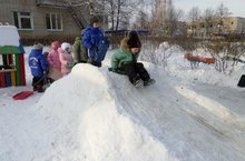 Все дорожки подмели, по уголочкам поскребли, и вот какая горка получилась- высокая, широкая!