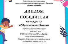 Учащаяся объединения "Грамматика английского языка" Абдрахманова Эмилия стала победителем республиканской олимпиады "Учу английский".