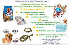 В МБУ ДО "ЦДТ" ЕМР РТ стартовала благотворительная акция в помощь бездомным собакам и кошкам "Золотые сердца". Акция продлится до 26 ноября 2023 года.