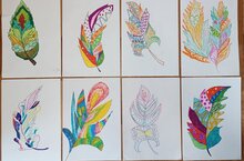 Учащиеся объединения «Палитра цвета», после рассказа о перьях нарисовали свои яркие и красивые «Волшебные» перья.