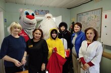 Ребята пришли в гости не с пустыми руками. они подготовили тёплые слова благодарности за нелёгкий и такой важный труд, сделали сами подарочки и, конечно же, привели самого настоящего Деда Мороза! ????