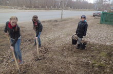 - На снимке: воспитанники объединения "Цветоводство" убирают территорию дома № 108, где проживает Григорьева Г.Н.