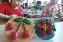 На занятиях в объединении "Калейдоскоп творчества" дети с большим удовольствием и интересом лепят разные поделки из глины. В их руках волшебная глина превращается в сувениры и игрушки.