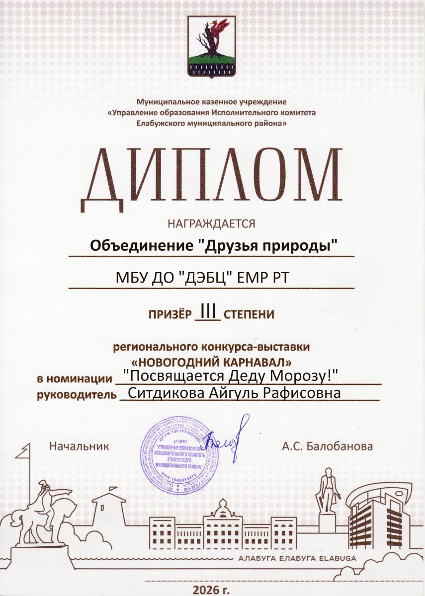 Муниципальное бюджетное учреждение дополнительного образования "Детский эколого-биологический центр" Елабужского муниципального района Республики Татарстан / Татарстан Республикасы Алабуга муниципаль районының "Балалар экология-биология үзәге" өстәмә белем бирү муниципаль бюджет учреждениесе