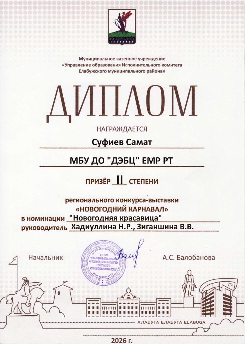 Суфиев Самат призер 2 ст регион конкурса Новогодний карнавал.jpg