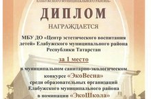 МБУ ДО "Центр эстетического воспитания детей" Елабужского муниципального района стал победителем конкурса Эковесна 2017 в номинации "Эко школа" среди образовательных организаций Елабужского муниципального района в секции "Лучшее экоучереждение дополнительного образования детей".