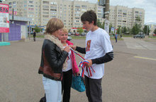 Вот уже на протяжении нескольких лет 12 июня студенты Елабужского политехнического колледжа выходят на улицы города, чтобы прикрепить елабужанам ленточки с российским триколором, показав свою общность и солидарность.