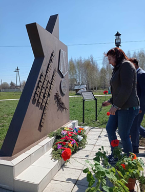 По окончании митинга к вечному огню была возложена корзина с цветами.