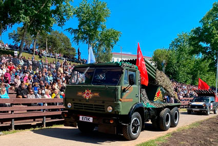 Далее проехала колонна автомобилей участников муниципального конкурса на лучшее оформление автомобиля на военную тематику "Навстречу Победе".