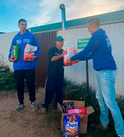 Студенты-молодогвардейцы организовали сбор корма для бездомных собак и кошек. Собранный корм передали в приют для бездомных животных "Верность".