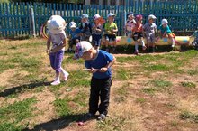 Ох и жаркий сегодня выдался денек, но и прогулка у нас сегодня не обычная, под стать погоде. В нашем детском саду сегодня прошёл праздник «День рыбака», где были проведены состязания между командами детей. Целью данного мероприятия было: приучить детей в игровой форме к здоровому образу жизни; развить у них внимательность, сообразительность, выдержку и ловкость. / Бүген эссе һәм эссе көн көн булды, әмма бүген бездә йөрү гадәти түгел, һава торышы да. Безнең балалар бакчасында бүген «Балыкчы көне» бәйрәме узды, анда балалар командалары арасында ярышлар үткәрелде. Әлеге чараның максаты: балаларны уен формасында сәламәт яшәү рәвешенә өйрәтү; аларның игътибарлылыгын, зирәклеген, чыдамлыгын һәм җитезлеген үстерү.