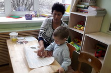 Малыши очень любят слушать сказки. Сказка будет особенно интересна, если дети сами показывают героя, о котором идёт повествование. Они сами с большим интересом расставляют на магнитной доске сказочных персонажей и пытаются даже пересказывать сказку с помощью воспитателя. / Нәниләр әкият тыңларга бик яраталар. Әкият аеруча кызыклы булачак, әгәр балалар үзләре күрсәтә герое, аның турында хикәяләр бара. Алар үзләре зур кызыксыну белән Магнит тактасына әкият персонажларын урнаштыралар һәм хәтта әкиятне тәрбияче ярдәмендә сөйләргә тырышалар.