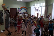 Танцевальное развлекательное мероприятие проводилось среди детей старшей и младшей групп. В мероприятие входила зарядка на свежем воздухе, а также музыкальный репертуар для танцев, который был интересен детям младшей и старшей групп. Развлечение проводится на участке детского сада.
