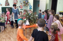 Новогодняя ёлочка приходит к нам ненадолго: на Старый Новый год наступает пора прощаться и с ней, и со всей чередой любимых детьми и взрослыми зимних праздников. Прощание с новогодней ёлочкой получилось в детском садике совсем не грустным, а наоборот – лёгким и жизнерадостным. Проведя интересную и содержательную презентацию, с детьми почитали стихотворения, поиграли в различные игры, а затем все вместе угощались вкусным пирогом\Яңа ел чыршысы безгә бик озак килә: Иске Яңа елга аның белән дә, яраткан балалар һәм өлкәннәр кышкы бәйрәмнәрен дә кичерер вакыт җитә. Яңа ел чыршысы белән хушлашу балалар бакчасында бөтенләй моңсу түгел, ә киресенчә – җиңел һәм шат күңелле килеп чыкты. Кызыклы һәм эчтәлекле презентация ясап, балалар белән шигырьләр укыдылар, төрле уеннар уйнадылар, соңыннан барысы бергә тәмле пирог белән сыйландылар.